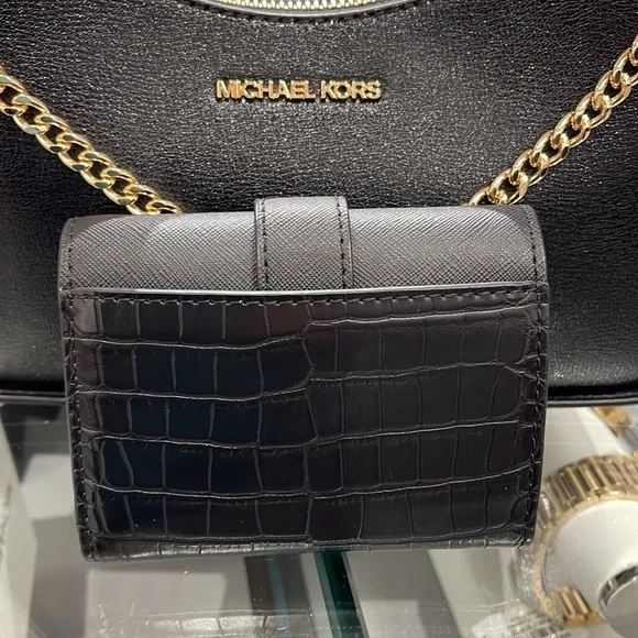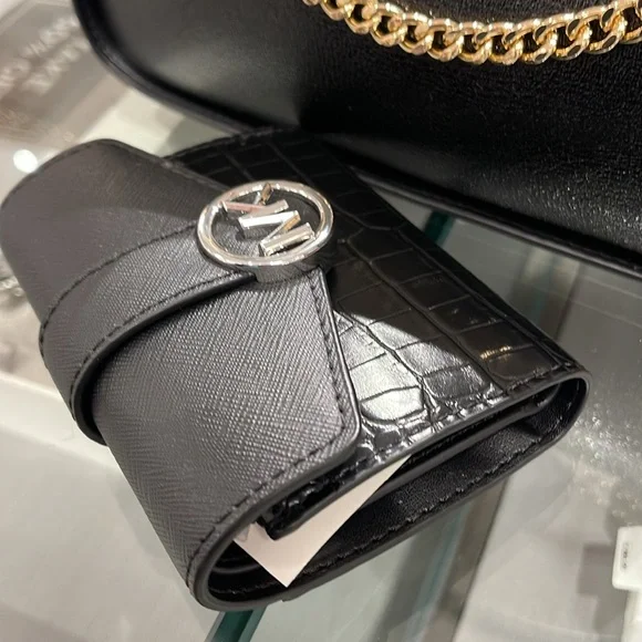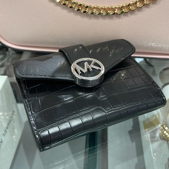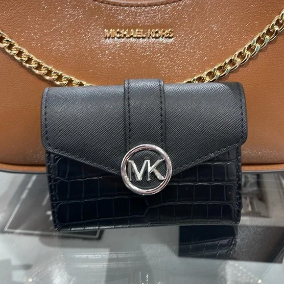 MICHAEL KORS CARMEN MEDIUM LOGO AND FAUX LEATHER WALLET BLACK NWT All our listed item are authentic, Brand New condition with Tag Size: Approximately 4.89 wide x 3.67 long x 1.63 thick (inch)Weight: Approximately 120 gMaterial: Leather Opening andclosing type: SnapInternal style: Zipper coin purse x 1, Wallet x 1, Open pocket x 2, Card pocket x 6External Style: 1 open pocketBifold Trifold MICHAEL KORSCARMEN35H3SNMFSIBLACKMD FLAP BLFLD WALLET